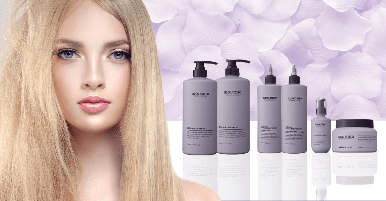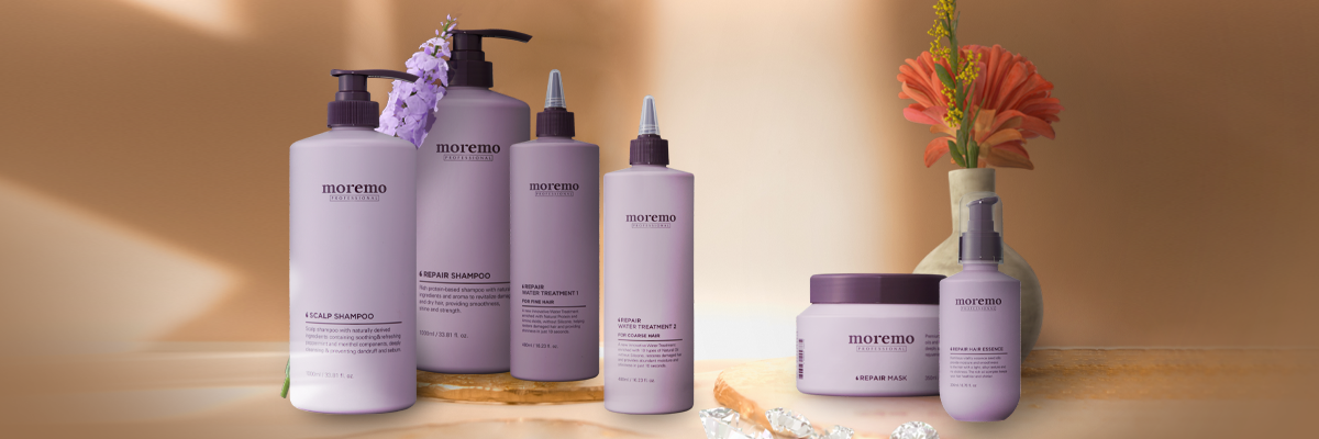 Through extensive scientific research, Moremo Professional has been developed with natural and highly concentrated ingredients, providing a modern and efficient system for treating dry, damaged hair and scalp with a long-lasting natural fragrance.